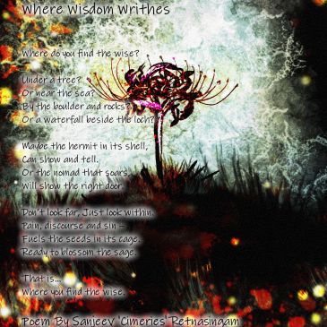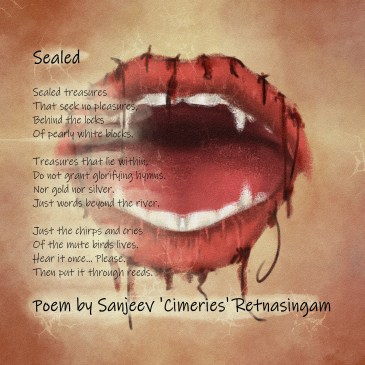 A bird forever caged, Will simply learn to listen – Stalls its chirps, Eyes wide open. Glaring at its keeper – Bird becomes watcher. Free at last But wiser than ever. The world outside Is not ready for the duo. Watcher & keeper… Trapped in their tower. Poem By Sanjeev ‘Cimeries’ Retnasingam